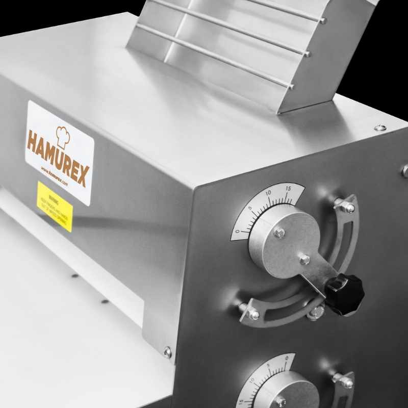 Sentetik, yapışmaz merdaneler, kalite kontrol için her parçanın aynı homojen kalınlıkta olmasını sağlarken hamurunuzun üniteden kolayca geçmesini sağlar. Çalışanlarınızın korunması için bu silindir, otomatik kapanma için güvenlik sensörleri ile donatılmış izole bir tahrik mekanizmasına sahiptir.